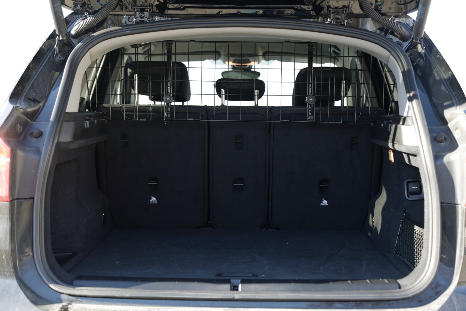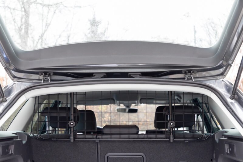 Safe transport for people and animals: the Kerbl Pet car guard allows you to transport animals safely in the boot. It not only ensures the safety of the pets travelling with you, but also protects the occupants from unforeseen incidents during the journey., Customisable width: with an adjustment width of 96 to 145 cm, the safety grid offers maximum flexibility. This individual adjustability makes it possible to adapt the grid perfectly to the dimensions of your vehicle to ensure a snug fit in the boot., Quick and easy to attach: installing the Kerbl Pet car guard is extremely straightforward. It is easy to fit in the car without the need for special tools. The grid is attached to the headrests using a practical click connector., Robust construction for long-term use: the partition grille not only impresses with its functionality, but also with its robust construction. Made from high-quality materials, it guarantees long-term use and remains reliable and stable even with regular use., Flexible in use: the boot grille was designed for transporting dogs, but is also suitable as a secure partition when transporting objects, for example when the boot is full to the top.