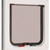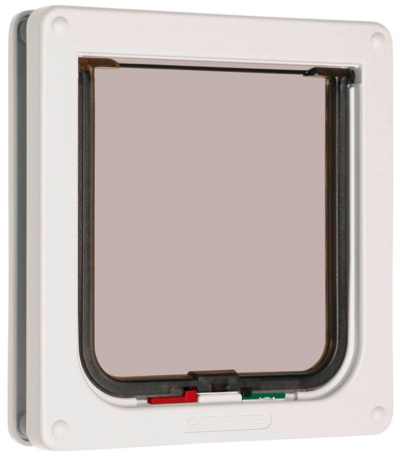 for doors with thin panels, sliding interlock which cannot be manipulated, with sturdy, transparent polymer flap, draught-free weather-resistant seals
